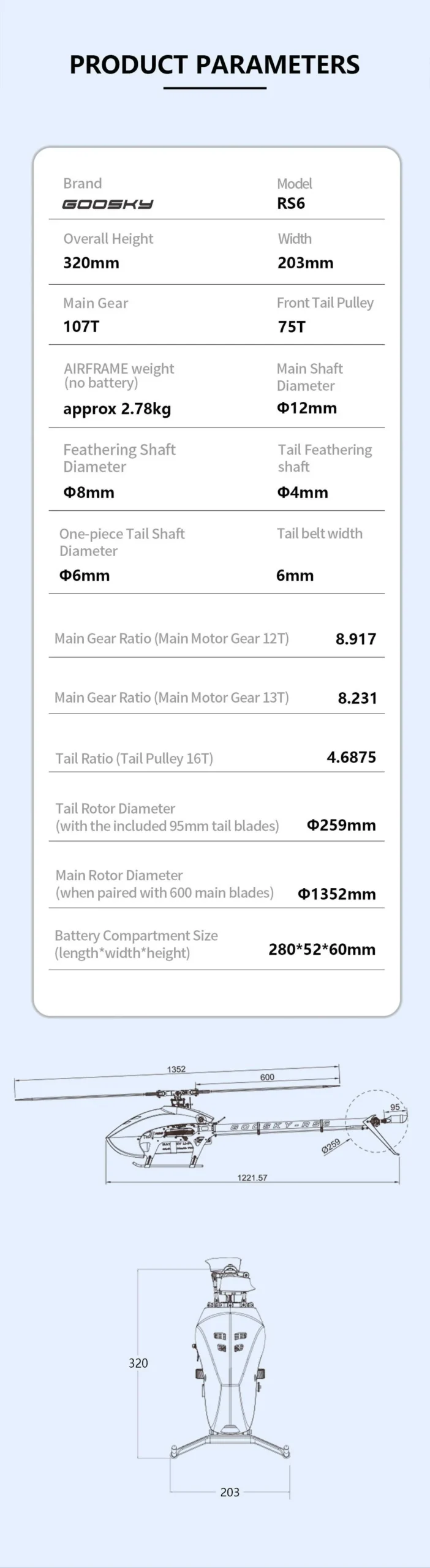 Goosky Legend RS6 Helicopter Kit w/o Blades