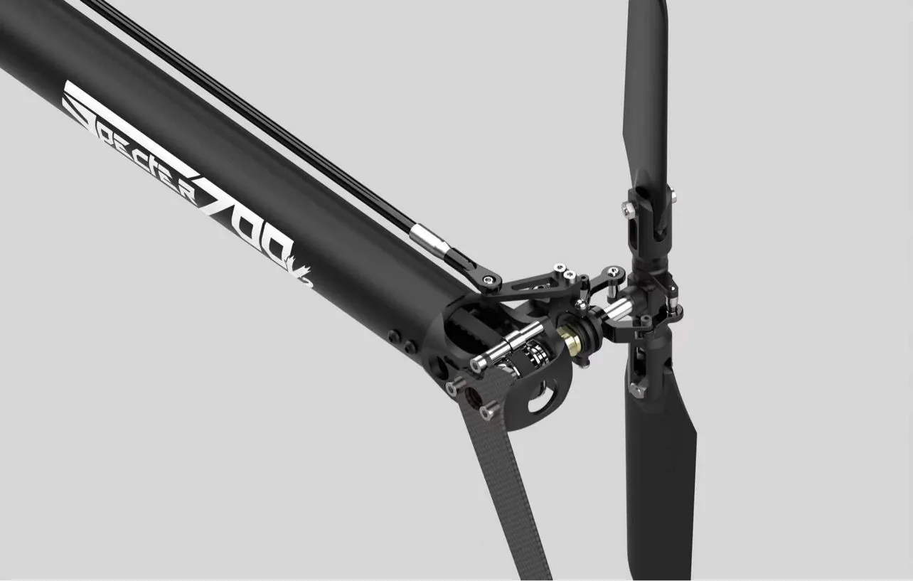 Direct drive main gear directly driving the rotor head has been designed for producing peak power through extreme rigidity, transferring all the power of big block nitro engines. Heavy duty sprag one way system and a dual supported clutch system (top and bottom) tied to the main crutch of the helicopter prolongs bearing life and engine performance.